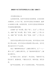 2025年8月写材料排比句汇编(268页)作风建设类排比句1.正风肃纪的威慑力越来越大,动辄则咎的态度更加坚决;遵规守纪的自觉性越来越强,敬畏知止的意识更加强烈;制度规定的防火墙越来越牢,常管长严的氛围更加浓厚;干事创业的积极性越来越高,担当作为的正气更加充盈。2.从思想上正三观,在返璞归真、固本培元中涵养清廉基色;从认识上提站位,在认清形势、严守规矩中筑牢忠诚底色;从行动上抓落实,在担当尽责、敢为善为中彰显作风本色。3.在“凡事讲政治”上锤炼过硬作风能力,在“谋事为群众”上锤炼过硬作风能力,在“干事重实效”上锤炼过硬作风能力,在“成事争一流”上锤炼过硬作风能力。4.坚持系统导向,在“攻坚克难...