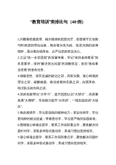 营商环境类排比句(40例)(2024年10月29日)营商环境类排比句40例1.提高政治站位,在携手共进中打造协作“升级版”;坚持改革创新,在攻坚突破中擦亮协作“金名片”;深化合作交流,在互学互鉴中奏响协作“大合唱”。2.让“坐等审批”成过去、变“上门服务”为常态,让“照本宣科”成旧史、变“巧办快办”为新风,让“千篇一律”成往昔、变“一企一策”为现行。3.突出“服务”意识,思想上“再主动一点”;突出“标准”意识,工作上“再规范一点”;突出“担当”意识,作风上“再扎实一点”。4.高效便捷的政务环境,公平公正的法治环境,自由便利的市场环境,更加优质的金融环境,尊商重商的人文环境。5.便捷高效的政务环...