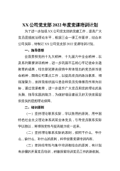 国企2022年度党员教育培训计划暨“两学一做”学习教育常态化制度化工作计划