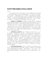 在全市干部队伍建设工作会议上的讲话同志们:今天我们组织召开全市干部队伍建设工作会议,刚刚组织部*部长已经明确了今年的干部队伍建设工作计划,希望抓好贯彻落实。今年的全市干部队伍建设工作主线是:“全面贯彻落实党的二十大精神,认真落实新时代好干部标准,坚持事业为上,深化选育管用全链条体系建设,着力锻造堪当时代重任的高素质干部队伍,为经济社会高质量发展提供重要干部人才支撑”。同志们,事业成败,关键在人。关于做好今年的干部队伍建设,再提以下五点要求:一、要围绕中心大局铸魂提能。理论滋养初心,思想引领使命。要始终把党的创新理论武装作为铸魂之本,认真组织实施习近平新时代中国特色社会主义思想培训计划,建立县处...