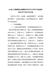 xx县人力资源和社会保障局2022年上半年工作总结及2022年下半年工作计划2022年上半年,在县委、县政府的领导下,在市局的精心指导下,以民生为重点,扎实开展各项工作,现将半年工作总结如下:一、工作开展情况(一)以民生实事为抓手,扎实推进就业创业工作。一是扎实开展为民办实事工作。截止x月底城镇新增就业任务xxxx人,完成xxx人,完成率xx%;失业再就业任务数xxxx人,完成xxx人,完成率xx%;困难人员再就业任务数是xxx人,完成xx人,完成率xx%;新增农村劳动力转移就业任务数xxxx人,完成xxx人,完成率xx%;职业技能培训经开班x期,培训学员xxx人;创业培训开班x期,培训学员x...