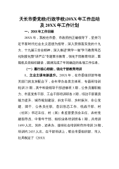 天长市委党校(行政学校)20XX年工作总结及20XX年工作计划一、20XX年工作回顾20XX年,我校在市委、市政府的正确领导下,坚持习近平新时代社会主义思想为指导,深入贯彻落实党的十九大、十九届三全会精神,深入推进“两学一做”学习教育常态化制度化暨“讲严立”专题警示教育,强化干部教育培训,重视机关党组织建设,圆满完成了年初确定的各项工作任务。(一)履行核心职能,强化干部教育培训1、主业主课有新提升。20XX年,在市委组织部等相关部门的支持配合下,全年举办各类主体班、专题班培训轮训23期,其中科级领导干部进修班3期,公务员履职能力、市直党务干部、工会干部培训班各2期,综治干部素质能力提升、城市规...