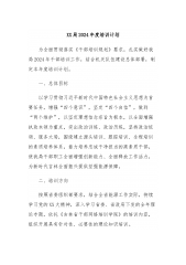 2024年度XXXX党支部党员教育培训计划为持续深入学习贯彻习近平新时代中国特色社会主义思想,巩固主题教育成果,认真贯彻落实XX大精神,教育引导支部全体党员干部坚决捍卫“两个确立”,牢固树立“四个意识”、坚定“四个自信”、坚决做到“两个维护”,进一步加强支部党员干部教育培训工作,提升全体党员干部队伍的整体素质,结合支部工作实际,特制定2024年党员教育培训工作计划如下:一、指导思想以习近平新时代中国特色社会主义思想为指导,全面贯彻落实党的XX大精神,教育引导广大党员牢记党的宗旨,坚定理想信念,增强“四个意识”,坚定“四个自信”,做到“两个维护”,努力建设一支政治坚定、纪律严明、作风优良、廉洁务...