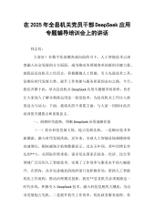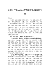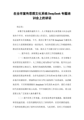 县委书记在县委理论学习中心组DeepSeek大模型应用专题培训会议上的讲话同志们:在数字化浪潮奔涌的当下,人工智能正以雷霆万钧之势重塑我们的生产生活、工作与思维模式。今天,我们齐聚于此,开展县委理论学习中心组DeepSeek专题培训,就是要紧跟时代脉搏,把握科技发展大势,以人工智能赋能XX县各项事业,开创高质量发展新局面。下面,我谈几点意见。一、强化思想认知,树立拥抱AI的积极态度(一)洞悉科技变革大势,敏锐捕捉发展先机。当前,以人工智能为代表的新一轮科技革命和产业变革风起云涌正成为重塑全球经济结构、改变人类生活方式的关键力量从国家层面来看,《新一代人工智能发展规划》明确提出要抢抓人工智能发展...