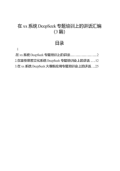 在2025年DeepSeek大模型应用专题辅导培训会议上的讲话材料汇编(7篇)目录1.在2025年DeepSeek学习应用专题培训会上的讲话.............22.在2025年DeepSeek学习应用专题培训会上的讲话.........133.在2025年DeepSeek学习应用专题培训会上的讲话.........214.在2025年DeepSeek大模型应用专题辅导培训会议上的讲话...............................................................................................335.在202...