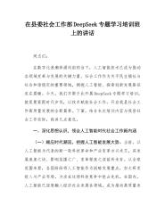 县委书记在县委理论学习中心组DeepSeek大模型应用专题培训会议上的讲话范文同志们:在数字化浪潮奔涌的当下,人工智能正以雷霆万钧之势重塑我们的生产生活、工作与思维模式。今天,我们齐聚于此,开展县委理论学习中心组DeepSeek专题培训,就是要紧跟时代脉搏,把握科技发展大势,以人工智能赋能XX县各项事业,开创高质量发展新局面。下面,我谈几点意见。一、强化思想认知,树立拥抱AI的积极态度(一)洞悉科技变革大势,敏锐捕捉发展先机。当前,以人工智能为代表的新一轮科技革命和产业变革风起云涌正成为重塑全球经济结构、改变人类生活方式的关键力量从国家层面来看,《新一代人工智能发展规划》明确提出要抢抓人工智能...