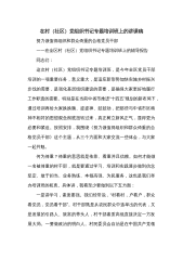 在2023年村(社区)“两委”干部履职能力提升培训示范班暨加强村级基层党组织建设专题培训班开班仪式上的讲话同志们:党的二十大报告明确提出,要“增强党组织政治功能和组织功能”“把基层党组织建设成为有效实现党的领导的坚强战斗堡垒”。2023年中央一号文件把“强化农村基层党组织政治功能和组织功能”作为健全党组织领导的乡村治理体系的重要措施之一。农村基层党组织要聚焦增强政治功能和组织功能这一着力点,把党的路线方针政策和党中央决策部署贯彻落实好,把人民群众组织凝聚好,为全面推进乡村振兴、加快建设农业强国提供坚强的政治和组织保证。举办这期专题培训班,主要目的是通过培训,使大家正确认识当前村级基层党组织建设...