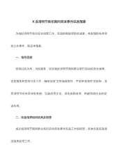 X县清明节祭祀期间突发事件应急预案为做好清明节祭扫安全保障工作,巩固前期疫情防控成果,有效预防各类突发公共事件,制定本预案。一、指导思想坚持以民为本,为民服务,切实做好清明节期间群众祭扫活动的安全保障、优质服务和宣传引导工作,确保实现“文明低碳祭扫,平安和谐清明”的目标,发挥清明节在传承传统美德、弘扬优秀文化、深化殡葬改革、构建和谐社会的促进作用。二、应急指挥组织机构及职责成立镇清明节期间群众祭扫活动突发事件应急工作指挥部,具体负责应急情况指挥处理工作。1.总指挥职责:负责对清明祭扫期间突发事件应急处理的统一领导、统一指挥、统一协调。2.副总指挥职责:协助总指挥做好突发事件应急处理的组织协调和...