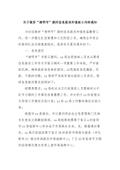 关于做好清明节、复活节和“五一”期间宗教领域安全生产和维稳工作的通知各宗教活动场所:清明节、复活节和“五一”假期即将到来,随着疫情防控措施的优化调整,今年前往各宗教活动场所祭祀和参加活动的群众将较往年有所增加。为切实做好近期宗教领域安全生产和维稳工作,现将有关事项通知如下:一、常备不懈抓好安全生产工作各宗教活动场所要重点围绕“防拥挤、防踩踏、防垮塌、防火灾”等关键环节,按照“谁主办、谁负责”的原则,压实场所主体责任,落实人员聚集安全、消防安全和交通安全等各项安全防范措施。在清明节期间,各宗教活动场所要始终坚持“安全第一、预防为主”的工作方针,结合实际科学合理设置祭扫服务场所最大承载量,对祭扫人...
