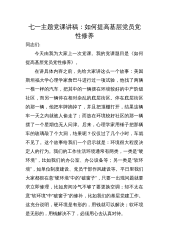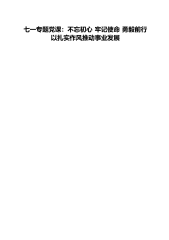 七一党课:锤炼党性践使命凝心聚力葆初心以自觉担当的实际行动喜迎党的二十大胜利召开同志们:今年中国共产党将召开第二十次全国代表大会,这是我们党进入全面建设社会主义现代化国家、向第二个百年奋斗目标进军新征程的重要时刻召开的一次十分重要的代表大会,是党和国家政治生活中的一件大事。值此之际,根据党支部工作计划和“七一”组织生活安排,借这样一个难得的机会,和大家做一番交流,与在座的各位党员共勉,为“美丽幸福XX”建设添砖加瓦。一、百年党史,风雨兼程恰风华正茂。岁月铭记奋斗的艰辛,历史映射真理的光芒。中国共产党的辉煌历程不仅在于始终坚持马克思主义,更在于中国共产党是一个始终代表最广大人民群众根本利益的伟大...
