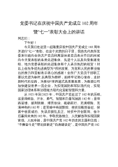 党委书记在庆祝中国共产党成立102周年暨“七一”表彰大会上的讲话