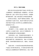 学习总书记七一重要讲话征文——以“三有”促“三学”习近平总书记在党史学习教育动员大会讲话中指出,要把学习党史同总结经验、观照现实、推动工作结合起来,把学习成效转化为工作动力和成效。我的理解,就是注重方式方法,坚持学以致用,切实转化学习教育成效。一要“有心”,学出“忠诚品质”。习近平总书记强调,“党史学习教育的一个重要任务就是教育引导全党同志坚定理想信念、筑牢初心使命。”这次党史学习教育的一个明确要求就是学史增信,就要用党的光荣传统和优良作风坚定信念、凝聚力量,用信仰信念信心照亮奋斗之路。历史一再证明,从建党的开天辟地,到建立新中国的改天换地,再到改革开放的翻天覆地,从苦难走向辉煌,从沉沦走向复...