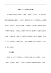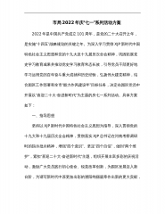 “”“市某局关于开展红色七月党旗飘扬庆七”一系列活动的工作方案为深入学习习近平新时代中国特色社会主义思想,贯彻落实党的二十大精神以及习近平总书记重要讲话重要指示精神,巩固拓展提升党史学习教育成果,继承和发扬党的光荣传统,引导激励各基层党组织和广大党员干部在服务XX高质量发展、建设新的更高水平的XX中自觉担当、主动作为、积极奉献,以更昂扬的姿态、更扎实的措施、更显著的成效迈好建设现代化强国的第一步。根据中央省“”市委关于开展庆七一主题活动相关文件精神,现就XX系“”“”统开展红色七月党旗飘扬庆七一系列活动制定如下工作方案:一、指导思想以习近平新时代中国特色社会主义思想为指导,深入贯彻落实党的二十...