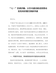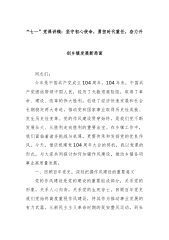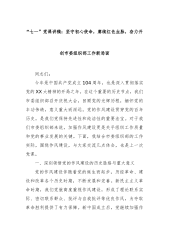 “七一”党课讲稿:赓续红色血脉,淬炼过硬作风,为新时代组织工作高质量发展提供坚强保障同志们:百年征程波澜壮阔,百年初心历久弥坚。在庆祝中国共产党成立104周年之际,我们齐聚一堂,共同回顾党的光辉历程,缅怀先烈的丰功伟绩,展望未来的发展蓝图。在此,我代表市委组织部,向全体党员致以节日的问候和崇高的敬意!中国共产党自成立以来,始终把作风建设作为党的建设的重要内容,形成了理论联系实际、密切联系群众、批评与自我批评等一系列优良作风。这些作风是我们党区别于其他政党的显著标志,是我们党取得革命、建设和改革胜利的重要保证。党的十八大以来,以习近平同志为核心的党中央以“得罪千百人、不负十四亿”的使命担当祛疴治...
