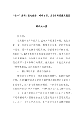 “七一”党课讲稿:弘扬优良作风,奋力担当作为,为推动市直机关高质量发展提供坚强保障同志们:今天,我们在这里隆重集会,庆祝中国共产党成立104周年。104年来,中国共产党团结带领全国各族人民,取得了革命、建设、改革的伟大胜利,创造了经济快速发展和社会长期稳定两大奇迹,推动党和国家事业取得历史性成就、发生历史性变革。市直机关作为党和政府的工作部门,在党的事业发展中肩负着重要职责。在这个特殊的日子里,我们通过讲党课的形式,回顾党的光辉历程,总结党的作风建设经验,对于我们进一步坚定理想信念,弘扬优良作风,推动市直机关各项工作高质量发展,具有十分重要的意义。下面,我围绕“弘扬优良作风,奋力担当作为,为推...