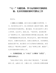 七一党课讲稿:赓续红色血脉,锤炼优良作风,以机关党建高质量发展引领保障全市高质量发展行稳致远同志们:今年是中国共产党成立104周年。在这一重要历史节点,我们市直机关党员干部齐聚一堂,开展此次党课学习,意义非凡。回顾党的光辉历程,我们党始终把作风建设作为党的建设的重要内容,在长期实践中形成了一系列优良作风,为革命、建设和改革事业提供了坚强保障。市直机关作为全市工作的枢纽和核心,承担着贯彻落实市委决策部署、推动经济社会发展的重要职责。在新的历史起点上,加强作风建设,对于提升市直机关工作效能、增强服务群众能力、推动全市高质量发展具有极其重要的意义。借此机会,我围绕“赓续红色血脉,锤炼优良作风,以机关...