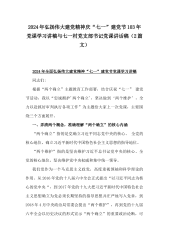 2024年全面弘扬伟大建党精神“七一”建党节党课讲稿与党委书记、局长在庆祝建党103周年暨“七一”表彰大会上的讲话稿【两篇文】供参考
