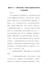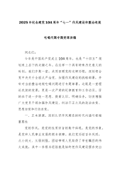 2025年纪念建党104周年“七一”作风建设和整治违规吃喝问题专题党课讲稿同志们:今年是中国共产党成立104周年,也是“十四五”规划承上启下的关键之年。在这样一个具有特殊历史意义的时刻,我们齐聚一堂,共同回顾党的光辉历程,深刻领会党中央关于全面从严治党、加强作风建设的战略部署,并针对当前整治违规吃喝问题进行专题部署,这既是一堂理论武装的党课,更是一次严肃的纪律教育和工作动员。目的在于进一步统一思想、提高认识、明确任务,切实增强广大党员干部加强作风建设、纠治不正之风的政治自觉、思想自觉和行动自觉。一、正本清源,深刻认识作风建设的时代内涵与极端重要性党的作风,是党的性质宗旨的集中体现,是党的形象,...
