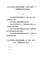 2024年领导讲纪律党课《党纪学习教育党课》讲稿、学习贯彻新修订《党纪律处分条例》宣讲党课辅导党课讲稿、庆七一建党党课讲稿【12篇】汇编供参考