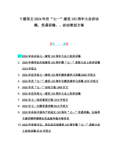 十篇范文2024年庆“七一”建党103周年大会讲话稿、党课讲稿、、活动策划方案