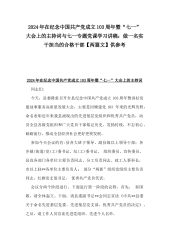 2024年在纪念中国共产党成立103周年暨“七一”大会上的主持词与七一专题党课学习讲稿:做一名实干担当的合格干部【两篇文】供参考