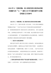 2024年七一党课讲稿:弘扬井刚山精神激发创新热情与党委书记在“七一”103年建党节表彰大会上的讲话稿(2篇文)