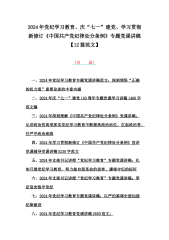 2024年党纪学习教育“七一”党课讲稿:守心守行做新时代合格共产党员与学习新修订的《中国共产党纪律处分条例》专题党课宣讲提纲【2篇文】