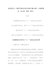 政协委员七一建党节座谈会发言材料汇编(4篇)(文物管理所、幼儿园、团委、银行)目录文物管理所支部书记“七一”座谈会发言材料1幼儿园党支部书记、园长“七一”座谈会发言材料3团区委书记“七一”座谈会发言材料6银行支行党委书记、行长“七一”座谈会发言材料8文物管理所支部书记“七一”座谈会发言材料一、党建引领,加强党性修养加强党性修养是加强党的建设的永恒课题,也是每名党员永葆政治本色、践行初心使命的根本途径和终身课题。习近平总书记强调:“党性教育是共产党人修身养性的必修课,也是共产党人的‘心学’。”党性是党员、干部立身、立业、立言、立德的基石,必须在系统的党性教座持续锻炼、不断加强。在新的赶考之路上,...