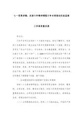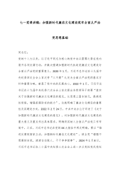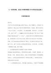 七一党课讲稿:切实将《条例》刻印于心、见之于行使铁的纪律转化为干事创业实绩实效同志们:纪律是管党治党的“戒尺”,也是党员约束自身行为的标准和遵循。这次党中央在全党开展的集中性纪律教育为我们提供了一次难得机会,我们一定要珍惜机会,抓住机会,主动对标党纪学习教育目标要求,通过学纪、知纪、明纪、守纪,切实把学习成果体现在筑牢思想防线、推动高质量发展上,始终做到忠诚、干净、担当。一、聚焦“忠诚”这一根本点,在“学”上下功夫,力求学深一层、多悟一分严明的纪律是共产党人取得成功的关键“密码”,加强纪律建设贯穿建党、兴党、强党的全过程。我省作为习近平总书记全面从严治党重大要求的首先提出地,党员干部要有更强烈...