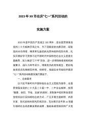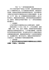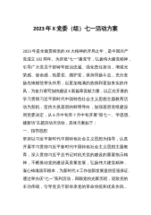 2023年X党委(组)七一活动方案2023年是全面贯彻党的XX大精神的开局之年,是中国共产党成立102周年。为庆祝“七一”建党节,弘扬伟大建党精神,引导广大党员干部铸牢政治忠诚、强化责任担当,增强光荣感、使命感,热爱党、拥护党,保持昂扬斗志,充分发扬先锋模范带头作用,以更加饱满的热情和更加务实的作风,为奋力谱写加快建设X新篇章贡献力量,以正在开展的学习贯彻习近平新时代中国特色社会主义思想主题教育活动为契机,坚持大抓基层的鲜明导向,加强基层党组建设局党委决定,从6月中旬至7月中旬开展“迎七一、学思想、建新功”主题活动月活动,具体方案如下:一、指导思想坚持以习近平新时代中国特色社会主义思想为指导,...