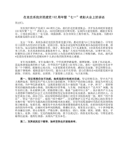 XX领导在全市“七一”表彰暨领导干部思想政治素质辅导大会上的讲话 今天,我们在这里隆重集会,庆祝中国共产党成立103周年,贯彻落实省主要领导在提升领导干部思想政治素质培训和辅导大会上的重要讲话精神,对今年涌现出的先进基层党组织、优秀共产党员、优秀党务工作者和“十佳群众满意单位”、“十佳人民满意公务员”进行隆重表彰,并就提高全市领导干部思想政治素质、提升履职尽责能力进行集中辅导,根本目的就是组织动员全市各级党组织和党员领导干部,重温党的历史,继承优良传统,不断增强党性修养和履职能力,以先进党组织和优秀党员为榜样,唱响主旋律,树起发展旗,以更加昂扬的精神风貌、更加饱满的创造激情、更加扎实的工作作...