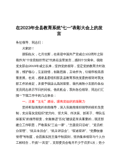 XX党委书记、局长在庆祝建党102周年暨“七一”表彰大会上的讲话同志们: 在这个具有重大历史纪念意义的特殊日子,我们隆重集会,热烈庆祝伟大的中国共产党102周年华诞,歌颂党的光辉历程和丰功伟绩,隆重表彰全市全市*系统先进基层党组织、优秀党务工作者、优秀共产党员,总结并展望党建创先争优等重点工作。 刚才,*宣读了表彰通令,对受到表彰的先进单位和个人进行了颁奖。这些受到表彰的同志,是在各自岗位上坚决贯彻党的路线方针政策,忠实践行*精神,开拓进取,扎实工作的优秀代表,体现了新时期共产党人的优良品质和*队伍的时代风范,都是值得全市各级学习的典范标杆。在此,我首先代表局党委,向受到表彰的先进基层党组...