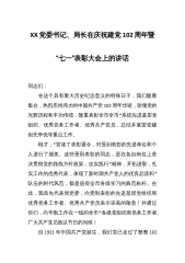 XX党委书记、局长在庆祝建党102周年暨“七一”表彰大会上的讲话