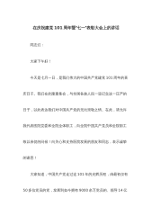 在“喜迎七一传承红色基因血脉文化引领助力青年xx建设”主题党日活动上的讲话各位领导、同志们:大家好!后天,就是建党101周年,全党全国通过各种方式举行热烈的庆祝纪念活动,讴歌我们党建党一百多年来走过的不平凡历程和取得的非凡业绩。此时,我们三家单位齐聚读者出版集团,以吸吮文化乳汁、感悟文化力量、坚定文化自信的方式,共庆党生共话发展,为助力xx经济社会高质量发展贡献力量。在此,我代表市xx党支部向曾为国防事业做出突出贡献和奋战在各条战线上的老党员、年轻党员表示诚挚的慰问和节日的祝福,对读者出版集团和xx交通银行xx分行提供的大力支持表示衷心的感谢。今天的活动,既是贯彻落实习近平总书记关于文化自信重...