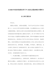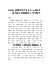 在理论学习中心组专题学习习近平总书记在全国“两会”上的重要讲话精神研讨会上的讲话(1)同志们:在全国“两会”胜利召开之际,习近平总书记亲临江苏代表团,对江苏工作提出“经济大省要挑大梁,为全国发展大局作贡献”的明确要求,这是对江苏发展的高度重视和殷切期望,为我们做好各项工作指明了方向、提供了根本遵循。作为x市人大,我们要深刻领会习近平总书记重要讲话精神,切实把思想和行动统一到党中央决策部署上来,以更高的政治站位、更强的责任担当,为x高质量发展贡献人大力量。下面,围绕本次专题学习,我谈几点体会,与同志们共同交流。一、深刻领会习近平总书记重要讲话精神,提升思想认识习近平总书记的重要讲话,高屋建瓴、思...