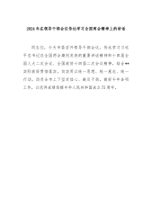 党课讲稿:学习贯彻2024年全国两会精神推动经济社会高质量发展中央党校(国家行政学院)社会和生态文明教研部教授丁元竹一、2024年全国两会的中心任务和主要内容 2024年全国两会的中心任务是全面贯彻落实党的二十大和二十届二中全会精神;主要内容则是关于十四届全国人大二次会议的主要议程、全国政协十四届二次会议的主要议程、十四届全国人大和十四届全国政协2023年工作情况和2024年工作安排。 围绕这一中心任务,全国人大和政协因其职能不同,分别有着各自的议程。全国人民代表大会的议程首先是审议政府工作报告。2024年3月5日,国务院总理李强代表国务院,向十四届全国人大二次会议作政府工作报告。此外,全...