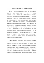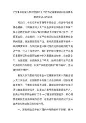 2024年在深入学习贯彻习近平总书记重要讲话和全国两会精神会议上的讲话同志们,今天召开全市领导干部会议,传达学习全国两会精神。十四届全国人大二次会议和全国政协十四届二次会议是在实现“十四五”规划目标任务关键之年召开的一次重要会议。大会期间,习近平总书记站在党和国家事业全局的高度,就发展新质生产力、推动高质量发展等发表一系列重要讲话,为我们奋进中国式现代化新征程指明了前进方向、注入了强大动力。我们要把学习贯彻习近平总书记重要讲话和全国两会精神作为重要政治任务,在全面学习、全面把握、全面落实上下功夫,始终沿着习近平总书记指引的方向前进,以实干实绩坚定拥护“两个确立”、坚决做到“两个维护”。要深入学...