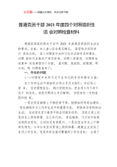 领导干部202X年度组织生活会“四个对照”个人对照检查材料(县级常务副部长)根据《中共××县委组织部关于召开202X年度基层党组织组织生活会和开展民主评议党员的通知》要求,本人结合一年来的学习、工作、生活等实际情况,对照“党中央和XJP总书记的号召和要求、新时代合格党员标准、入党誓词、革命先辈和先进典型”等4个方面,全面查找在政治、思想、学习、工作、能力、纪律、作风等方面的问题和不足,并进行了认真反思,提出了整改措施,明确了下一步努力方向。现将个人对照检查情况汇报如下。一、存在的问题(一)对照党中央和XJP总书记的号召和要求方面。虽然本人在平时工作和生活中,能够始终坚定正确的政治方向,积极响应...