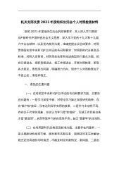 按照关于召开2021年度基层党组织组织生活会和开展民主评议党员的通知要求,我在积极参加集体学习和认真自学的基础上,广泛征求了意见建议、深入开展了谈心谈话,结合个人思想和工作实际,对照党中央和XXX的号召和要求,对照新时代合格共产党员标准,对照入党誓词,对照革命先辈和先进典型“四个对照”,深入查找了自身存在的问题和不足,深刻剖析思想根源,明确整改措施,现将有关情况汇报如下。一、存在的问题(一)在“对照党中央和XXX的号召和要求”方面。做一名纪检监察干部,我能够带头落实党中央和XXX的号召和要求,始终将党的政治建设摆在首位,带头拥护“两个确立”、坚决做到“两个维护”,切实发挥了表率作用。但深入反思...