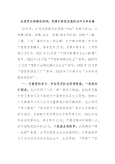 2024年优秀党务工作者先进事迹材料汇编(5篇)目录1.2024年优秀党务工作者先进事迹材料..........22.2024年优秀党务工作者先进事迹材料..........73.2024年优秀党务工作者先进事迹材料..........114.2024年优秀党务工作者先进事迹材料..........145.2024年优秀党务工作者先进事迹材料..........172024年优秀党务工作者先进事迹材料x,男,汉族,19xx年x月出生,x人,大学本科文化,19xx年x月参加工作,19xx年x月入党,现任中共x县委办公室主任。多年来,该同志严格履行党建第一责任人责任,围绕“举旗帜、抓班子、带队伍、...