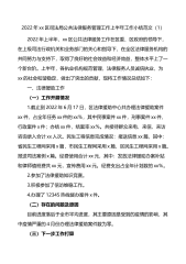 2022年xx区司法局公共法律服务管理工作上半年工作小结范文(1)2022年上半年,xx区公共法律服务工作在区委、区政府的领导下,在上级司法行政机关和业务部门的关心和指导下,在全区法律服务机构的共同努力与支持下,取得了良好的社会效益和经济效益,整体水平上了一个新台阶。上半年,各执业机构规范管理,法律服务人员诚信执业,为xx的社会和谐稳定,做出了突出的贡献,现将工作情况总结如下:一、法律援助工作(一)工作开展情况1.截止到2022年6月17日,区法律援助中心共办理法律援助案件xx件,占全年任务xx件的xx%,其中民事案件xx件,刑事案件xx件,行政案件x件;办结xx件,结案率xx%。共接待群众来...