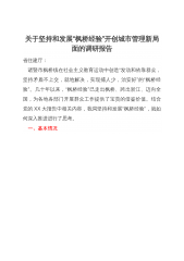 关于坚持和发展“枫桥经验”开创城市管理新局面的调研报告