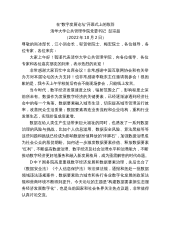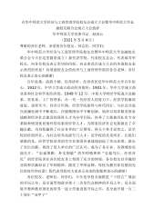 在华中师范大学经济与工商管理学院校友会成立大会暨华中师范大学金融校友联合会成立大会致辞华中师范大学党委书记赵凌云(2021年5月4日)尊敬的各位老师、亲爱的各位校友、同志们、同学们:华中师范大学经济与工商管理学院校友会暨华中师范大学金融校友联合会今天在这里隆重成立!我代表学校、代表校友总会、代表郝芳华校长,向各位校友表示亲切的问候,向出席此次成立大会的各地校友表示热烈的欢迎!向筹建校友会的经济与工商管理学院的各位老师、各位校友表示衷心的感谢!百年沧桑,流韵今朝。经邦济世、经世济民是华中师范大学百年初心。1912年,中华大学成立政治经济别科;1931年,华中大学成立商业系和社会科学系经济组;19...