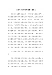 思政工作干部主题教育心得体会做好新时代思想政治工作(以下简称“思政工作”),尤其是推动新时代网络思政工作守正创新,必须充分发挥网络文化的育人功能。2021年7月12日,中共中央、国务院印发《关于新时代加强和改进思想政治工作的意见》强调指出:“加强网络思想政治工作,深入实施网络内容建设工程,加强网络传播能力建设,依法加强网络社会管理,推动思想政治工作传统优势与信息技术深度融合,使互联网这个最大变量变成事业发展的最大增量。”做好新时代思政工作应充分把握发挥网络文化育人功能的客观要求。推动思政工作守正创新,应该深入探究网络文化育人功能的价值、原则与实现路径,以完善新时代思政工作体系,构建助益于培育有...
