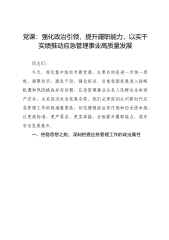 党课:强化政治引领,提升履职能力,以实干实绩推动应急管理事业高质量发展