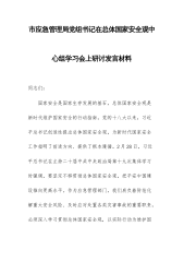 市应急管理局党组书记在总体国家安全观中心组学习会上研讨发言材料同志们:国家安全是国家生存发展的基石,总体国家安全观是新时代维护国家安全的行动指南。党的十八大以来,习近平总书记创造性提出总体国家安全观,为新时代国家安全工作指明了前进方向、提供了根本遵循。2月28日,习近平总书记在主持二十届中共中央政治局第十九次集体学习时强调,要坚定不移贯彻总体国家安全观,把平安中国建设推向更高水平。作为应急管理部门,我们肩负着防范化解重大安全风险、及时应对处置各类灾害事故的重要职责,必须深入学习贯彻总体国家安全观,以实际行动为维护国家安全和社会稳定贡献力量。下面,我谈几点体会,以供同志们参考。一、深刻认识总体国...