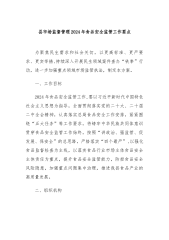 县市场监督管理2024年食品安全监管工作要点为聚焦民生需求和社会关切,以更高标准、更严要求、更实举措,持续深入开展民生领域案件查办“铁拳”行动,进一步加强重点领域市场监管执法,制定本方案。一、工作目标2024年食品安全监管工作,要以习近平新时代中国特色社会主义思想为指导,全面贯彻落实党的二十大、二十届二中全会精神,认真落实总局食品安全工作安排,紧紧围绕“五大任务”等工作要求,将铸牢中华民族共同体意识贯穿食品安全监管工作始终,按照“讲政治、强监管、促发展、保安全”的总思路,严格落实“四个最严”,以强化食品监督检查为主线,以落实食品行业市场主体食品安全主体责任为重点,提升食品安全监管能力,防控食品...