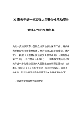 XX市关于进一步加强大型群众性活动安全管理工作的实施方案