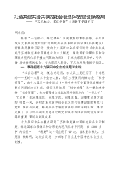 关于对xx村基层社会治理的创新探索与实践路径的思考一、问题提出基层社会治理是国家治理的基石。“十四五”规划提出实现“社会治理特别是基层治理水平明显提高”目标。随着市场经济的快速发展,基层治理模式逐渐向多元化方向发展,而基层治理创新在其中显得尤为重要。无论是顺应数字化发展大背景,引入互联网、大数据、人工智能等现代化信息技术来赋能基层治理,还是通过提高基层社会管理服务人员的专业水平,建立一支高素质、高水平、高标准的职业化队伍,以此促进基层社会治理工作质量及效率的整体提升[1],都需将基层治理创新摆在突出位置。基层是距离民众最近的地方,也是最能切实感受民众需求的地方,只有通过不断创新基层社会治理,更...
