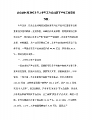 农业农村局2022年上半年工作总结及下半年工作安排(市级)